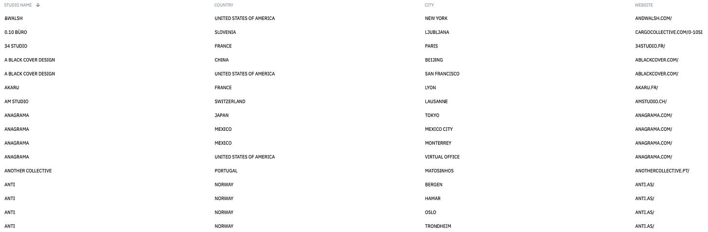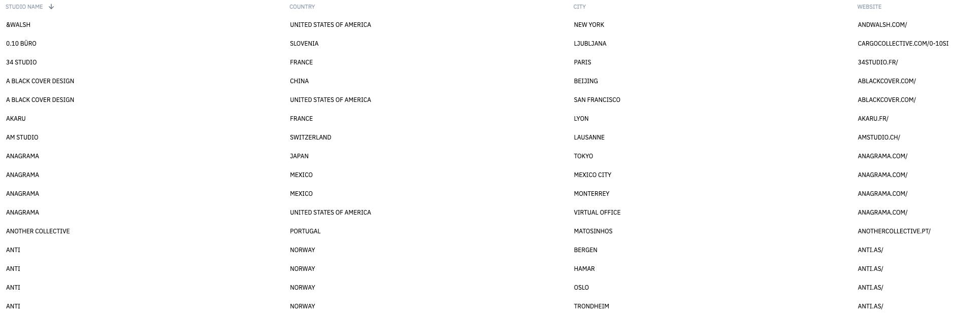 A clean, searchable index of design studios from around the world. Useful when you need a reference or want to see how good studios present themselves.